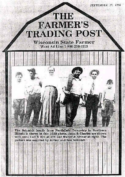 Schmidt family photo from 1920 as reprinted in Farmers Trading Post. Wisconsin State September 30, 1994 |