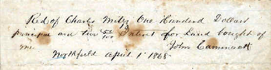 Purchase additional land by Charles Metz from Mr. Cammach. April 1, 1868 |