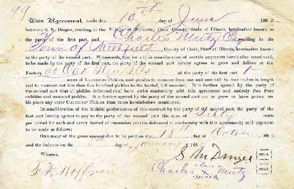 Contract to supply one acre of cucumber pickles June 10, 1882 |