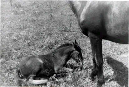 Northfield farm with 1 horse and chickens. Possibly growing horseradish in foreground | |
