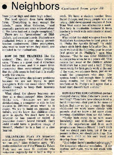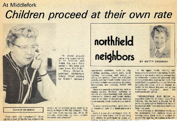 Interview with Mary Osborne, 1st Middlefork Principal (includes photo) |