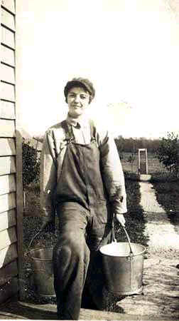 Postcard to Jetta Nadir of boy carrying buckets: "How do you like the looks of the boy. Isn't it pretty good. That's the way I looked when I was picking potatoes. Best love and wishes for a Merry Xmas. Thoran Emerson" | |