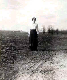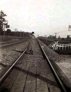 Woman, Anna Clavey, standing on railroad tracks in Northfield. Sister of Frederika Metz? |