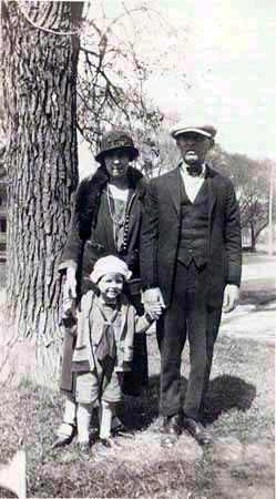 "Allen and Lucille" standing with child wearing sailor suit. "Aunt Rita" on back of photo |