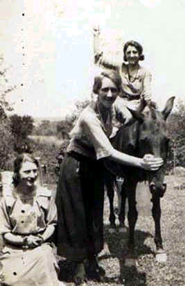 Three women with horse; Inscription: "Myself and my sister Frieda and Merle. One sister is a bum. She is never with Us. Ha. Ha." |