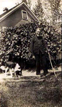 John Nadir using cane with dog. Brother of Frederika Metz. Nadir lived on Sunset Ridge Road. | |